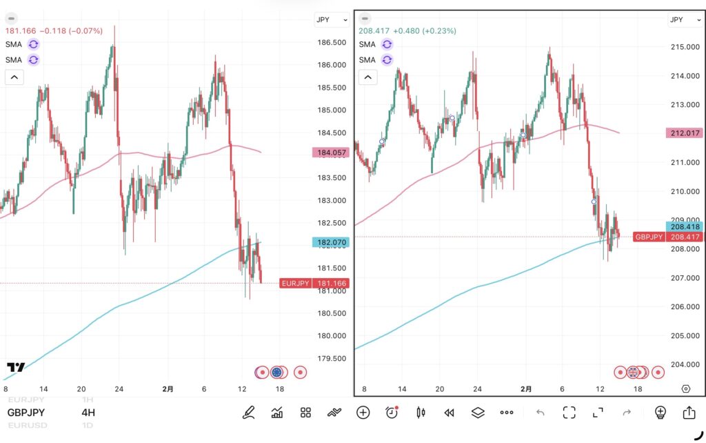 順調です♪ 上のアイキャッチ画像のチャートは左がユーロ円、右がポンド円の4時間足... -