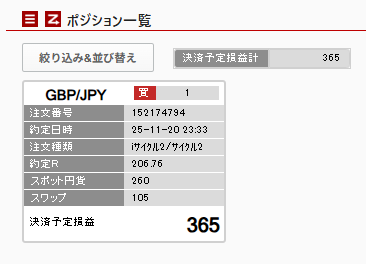 2025/11/27現在の損益状況(2025/11/18~の累積)23時くらい