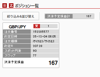 現在のポジション 未決済ポジションは1件で含み益です♪