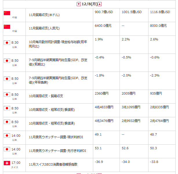 今日の午前中は、日本のGDP(改定値)や中国の貿易収支などの発表がありました。 日本のGDPはマイナス改定となっていて、国内景気の現状が少し心配になる数字ですね……。
