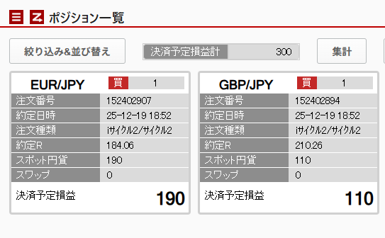 ポンド円:2025/11/18に1ロット開始、ユーロ円:2025/12/18に1ロット開始