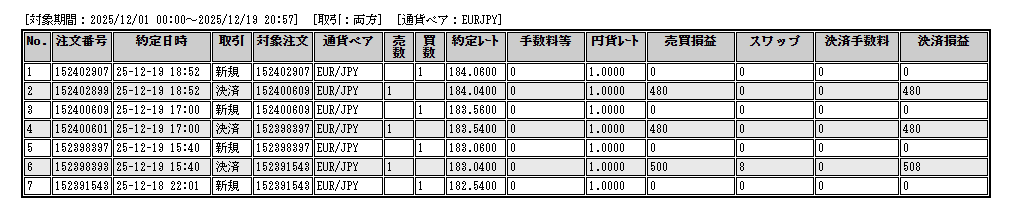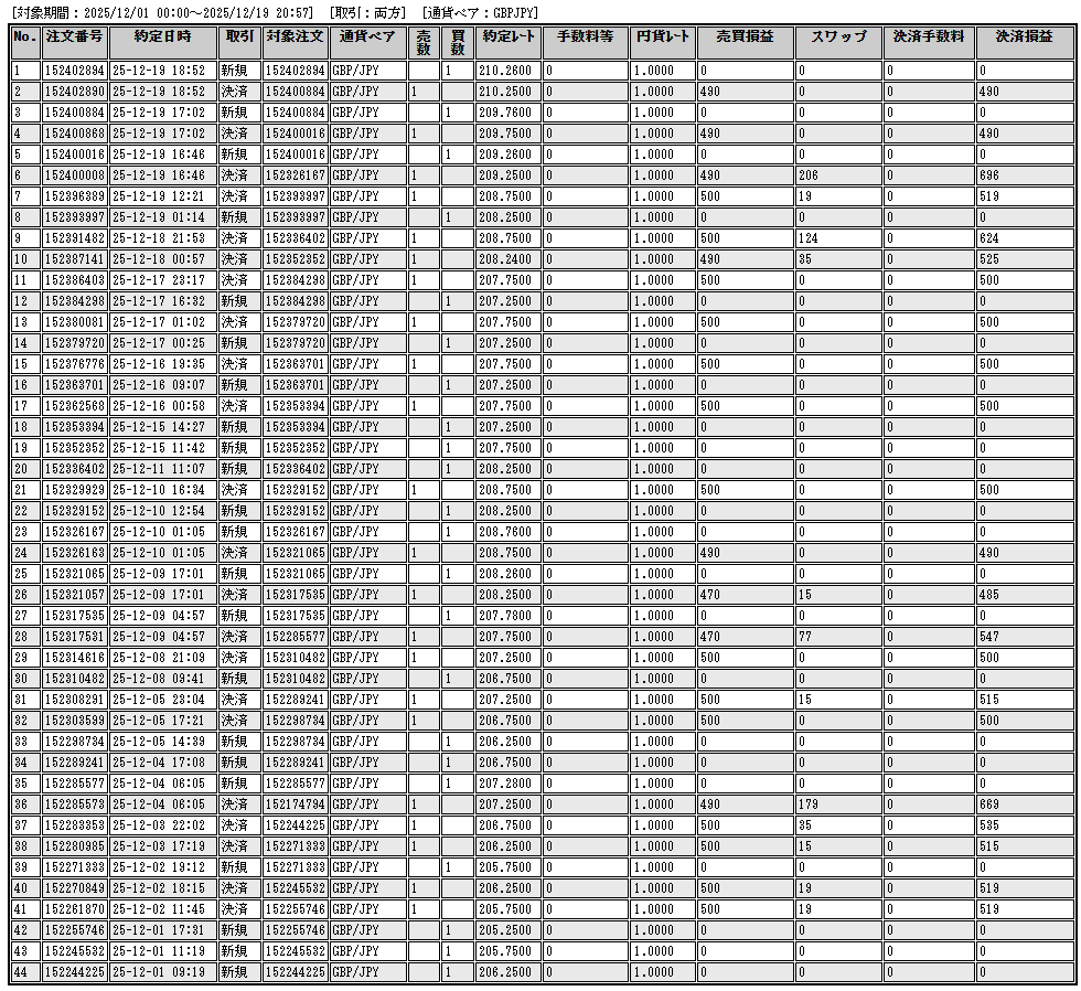 トレード履歴詳細(実際のスクショ):(2025年12月分)以前の記録は過去記事をご覧ください。