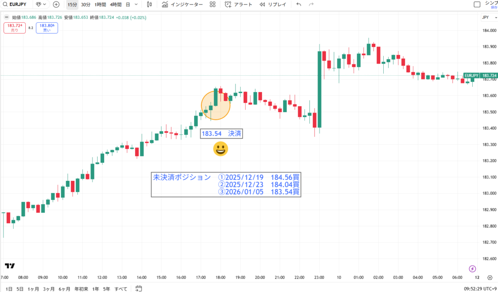 ユーロ円も同様に、お昼過ぎの反発で見事に決済! 相場が戻ってきてくれたおかげで、自動売買がしっかり仕事をしてくれました。未決済ポジションも少しずつ減り、心理的にも余裕が出てくるかな。