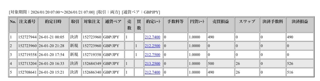 今日は合計で5つのポジションが決済されました♪