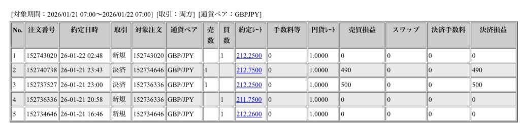 トレード履歴 ポンド円