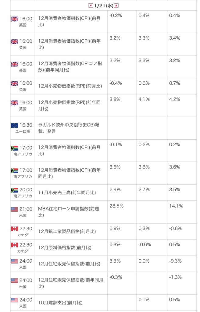 2026年1月21日(水)のカレンダー*外為オンラインからの引用