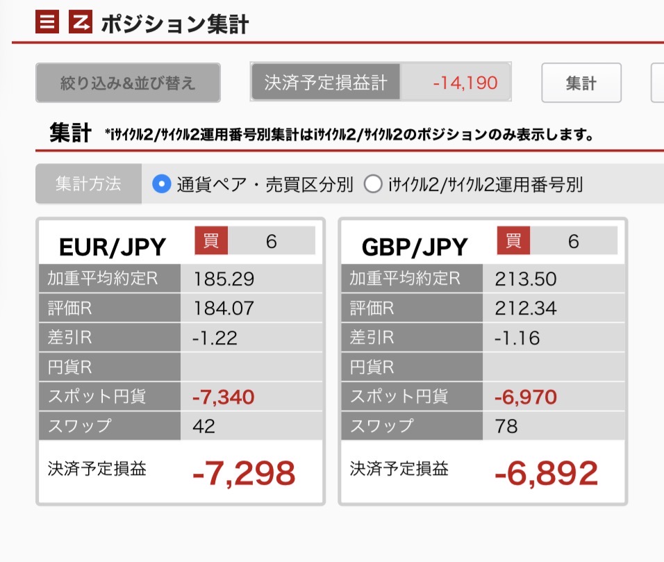 未決済ポジション一覧 ユーロ円6件、ポンド円6件ですね!