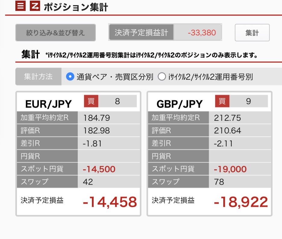 やっぱり週明けの月曜日は円高の動きになりましたね。こういう予想は当たる😅未決済のポジションと含み損がうわって感じですが💦、それでも自動売買システム『iサイクル2』は、下がったところでもしっかり利益を拾ってきてくれました。大波に逆らって頑張ってるなぁ〜って感じです☺️