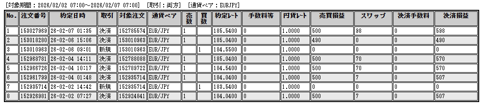 トレード履歴詳細ユーロ円