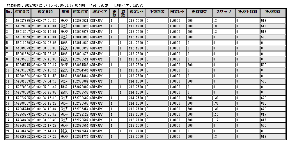 トレード履歴詳細ポンド円
