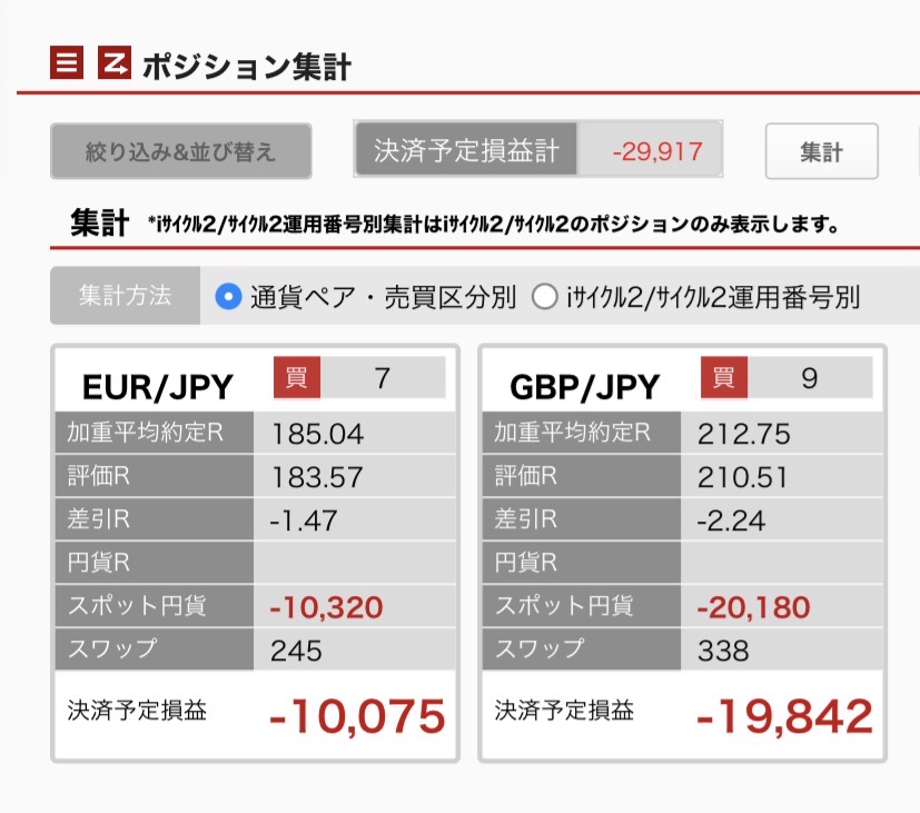 未決済ポジション一覧 ユーロ円7件、ポンド円9件ですね!