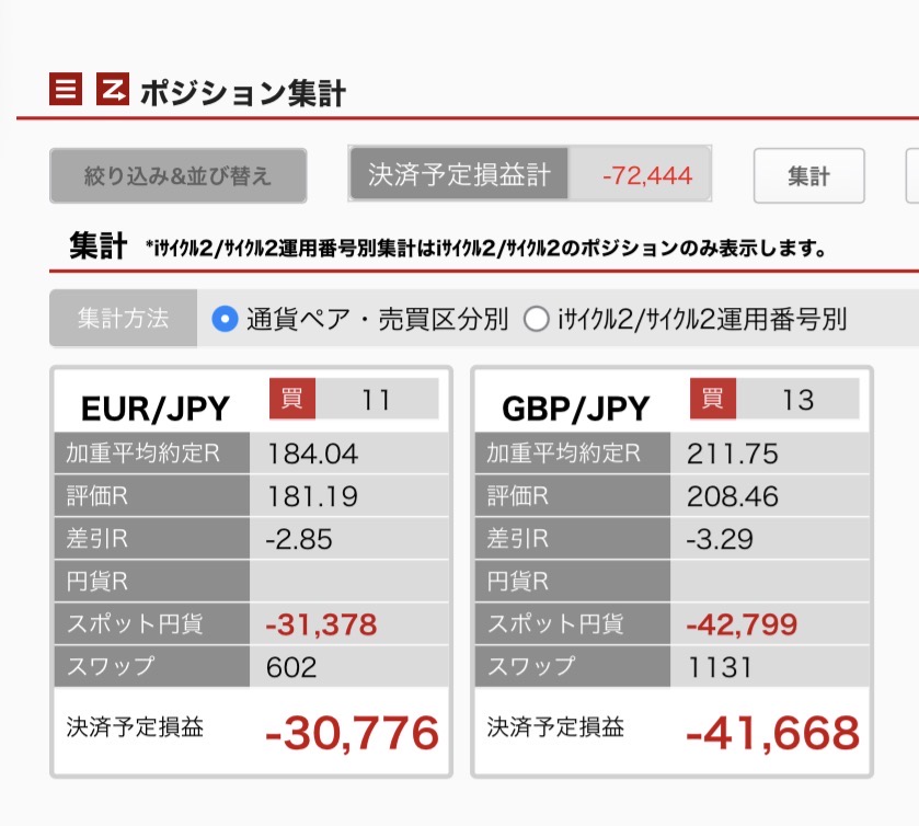 未決済ポジションが合わせて24件。含み損が合計で7万円を超えてきました(@_@)