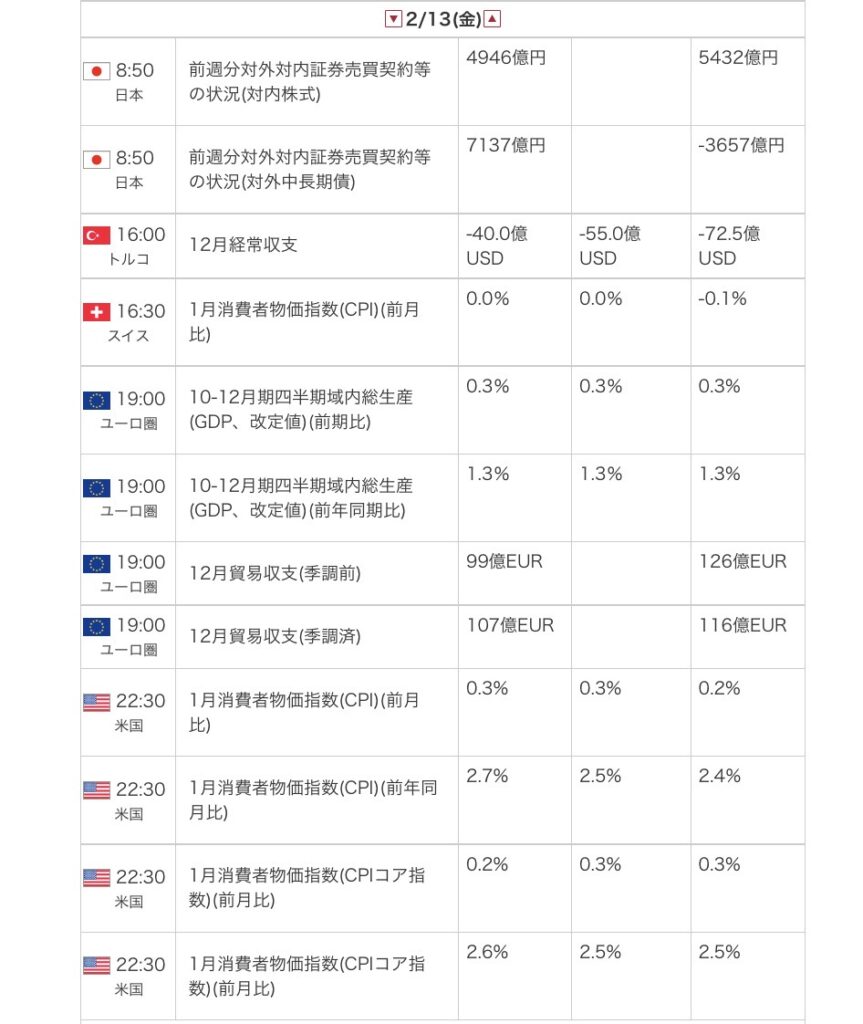 2026年2月13日(金)のカレンダー*外為オンラインからの引用