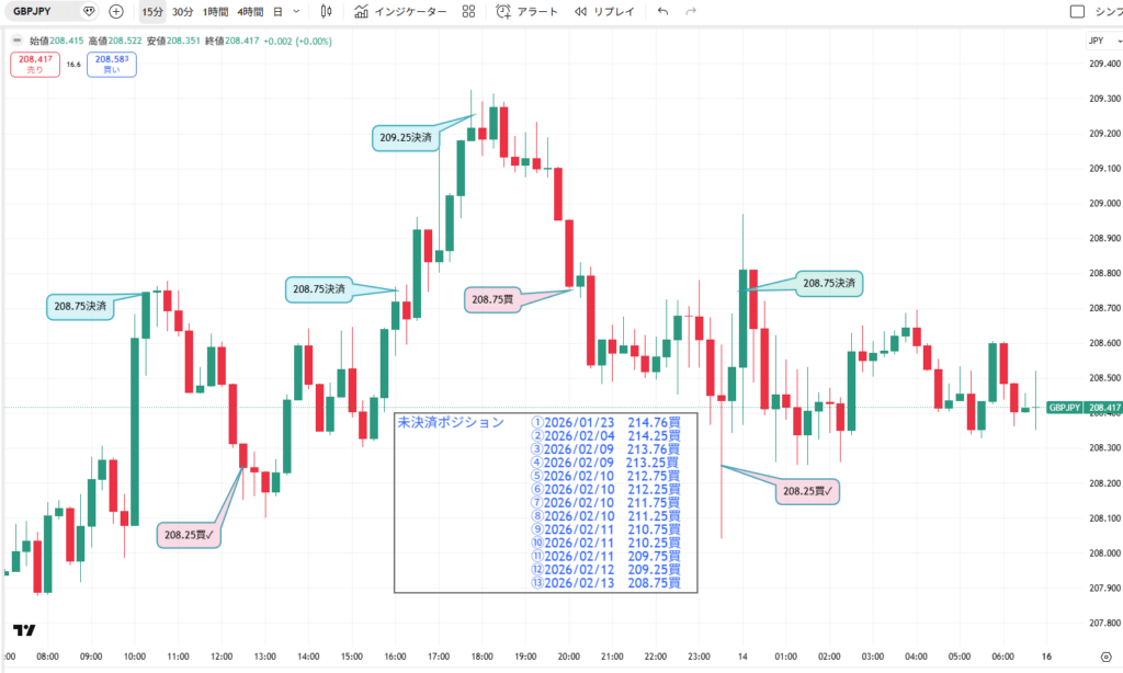 未決済ポジション一覧 ユーロ円11件、ポンド円13件ですね💦