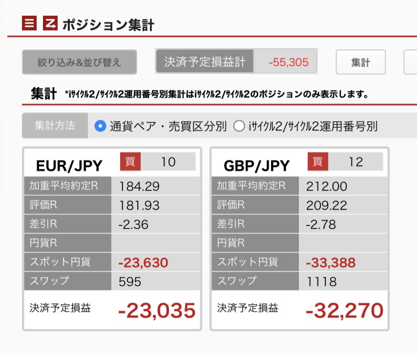 未決済ポジション一覧 ユーロ円10件、ポンド円12件ですね!