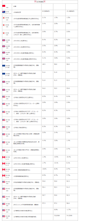 2026年2月20日(金)のカレンダー*外為オンラインからの引用