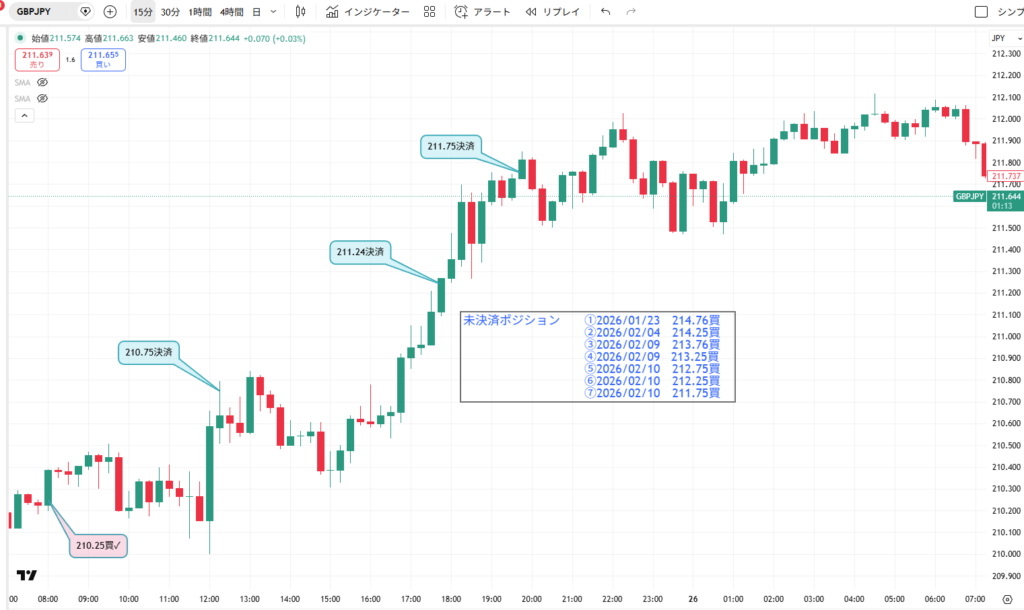 211円台での決済が続き、上昇の勢いを感じます。