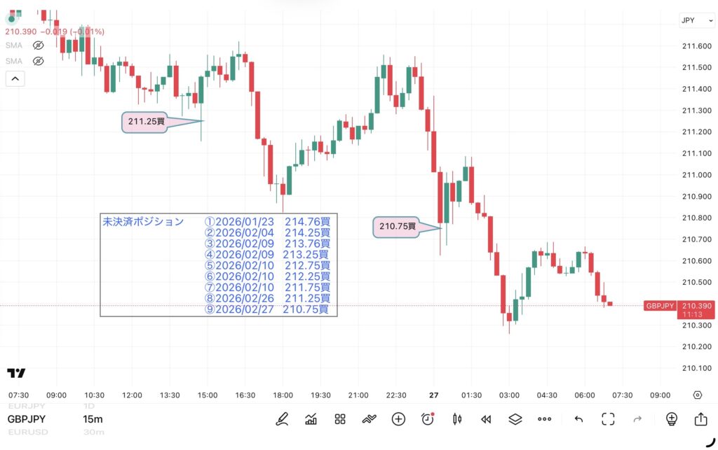 未決済ポジション一覧 ユーロ円6件、ポンド円9件ですね!